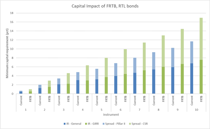 - How will FRTB affect required capital for RTL bonds?