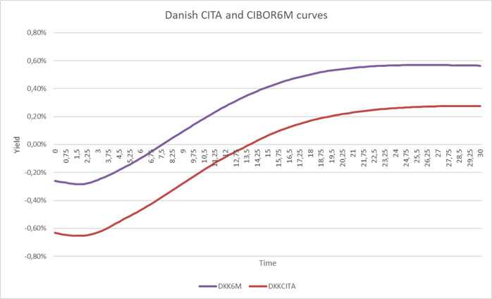 Figure 1: Danish CITA and CIBOR6M curves on 21 October 2019.
