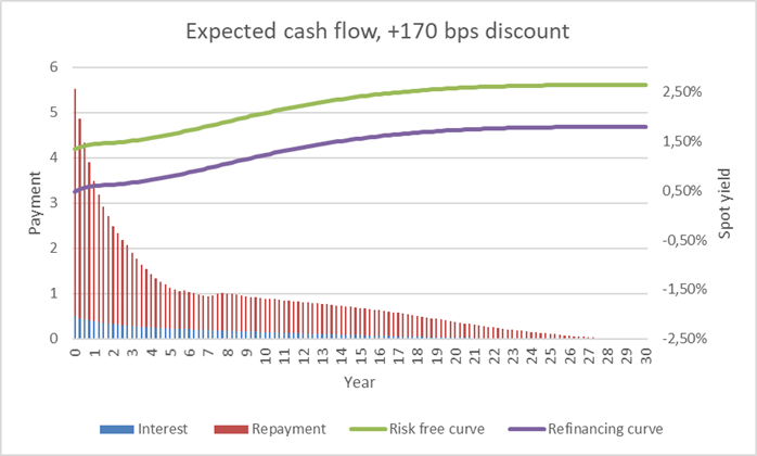 Når man skifter refinansieringskurven op og ned, ændrer den forventede betalingsrække sig.