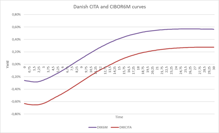Figur 1: De danske CITA og CIBOR6M kurver 21. oktober 2019.